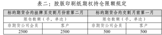 胶版印刷纸期权和胶版印刷纸期货共用获批的套期保值交易持仓额度。